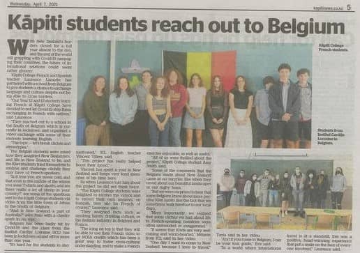 Le journal de Kapiti, la ville des correspondants Néo-Zélandais, a même publié un article à ce sujet. L’Institut Cardijn Lorraine est connu à l’autre bout du monde. Génial, non ?!