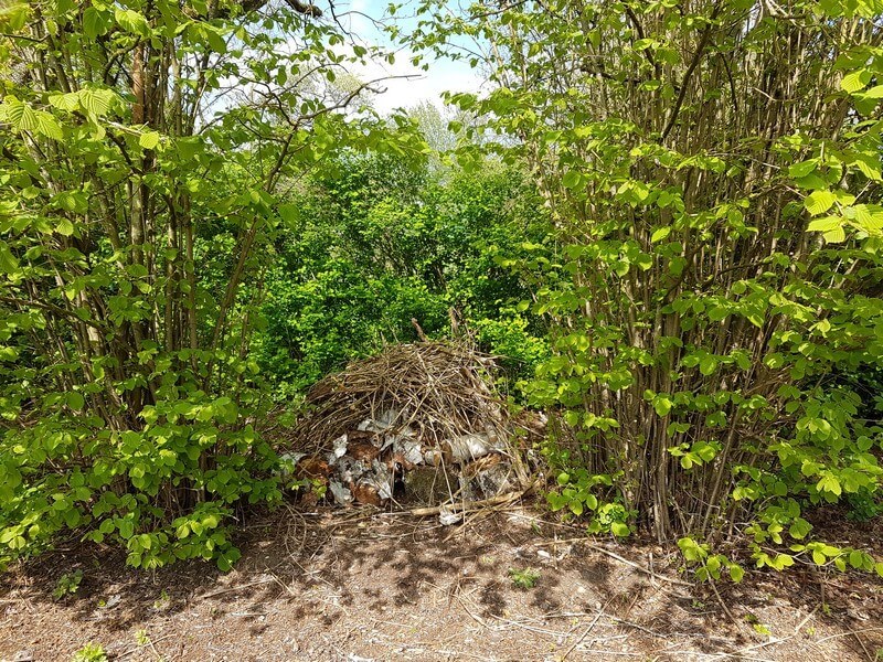 Le printemps est bien là. Il a verdi notre environnement ; l’abri à hérisson est davantage dissimulé.