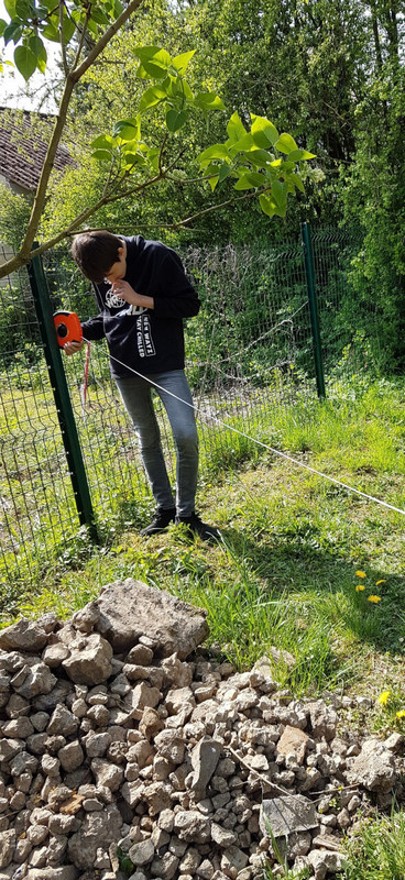 Il est temps de prendre les mesures pour la clôture en attendant la réception de la commande des matériaux pour installer notre plan d’eau.