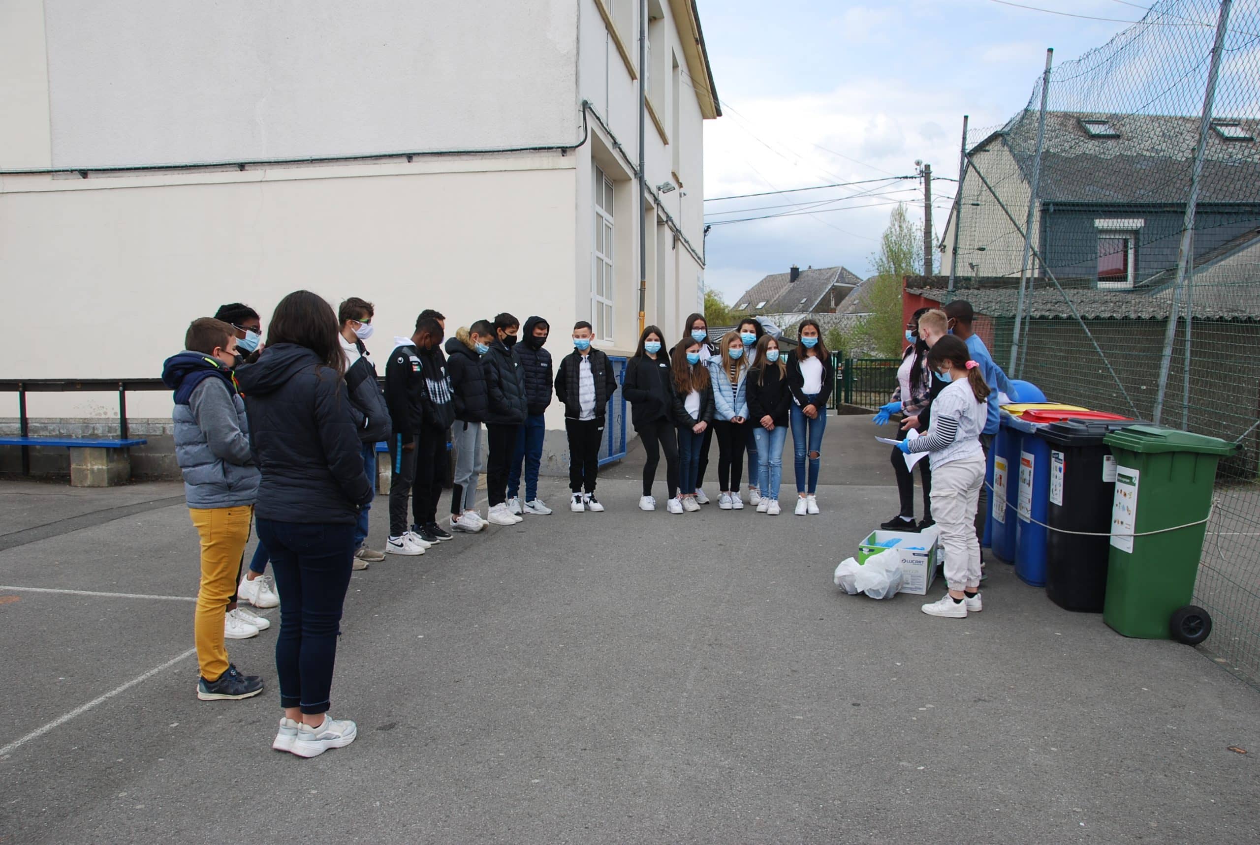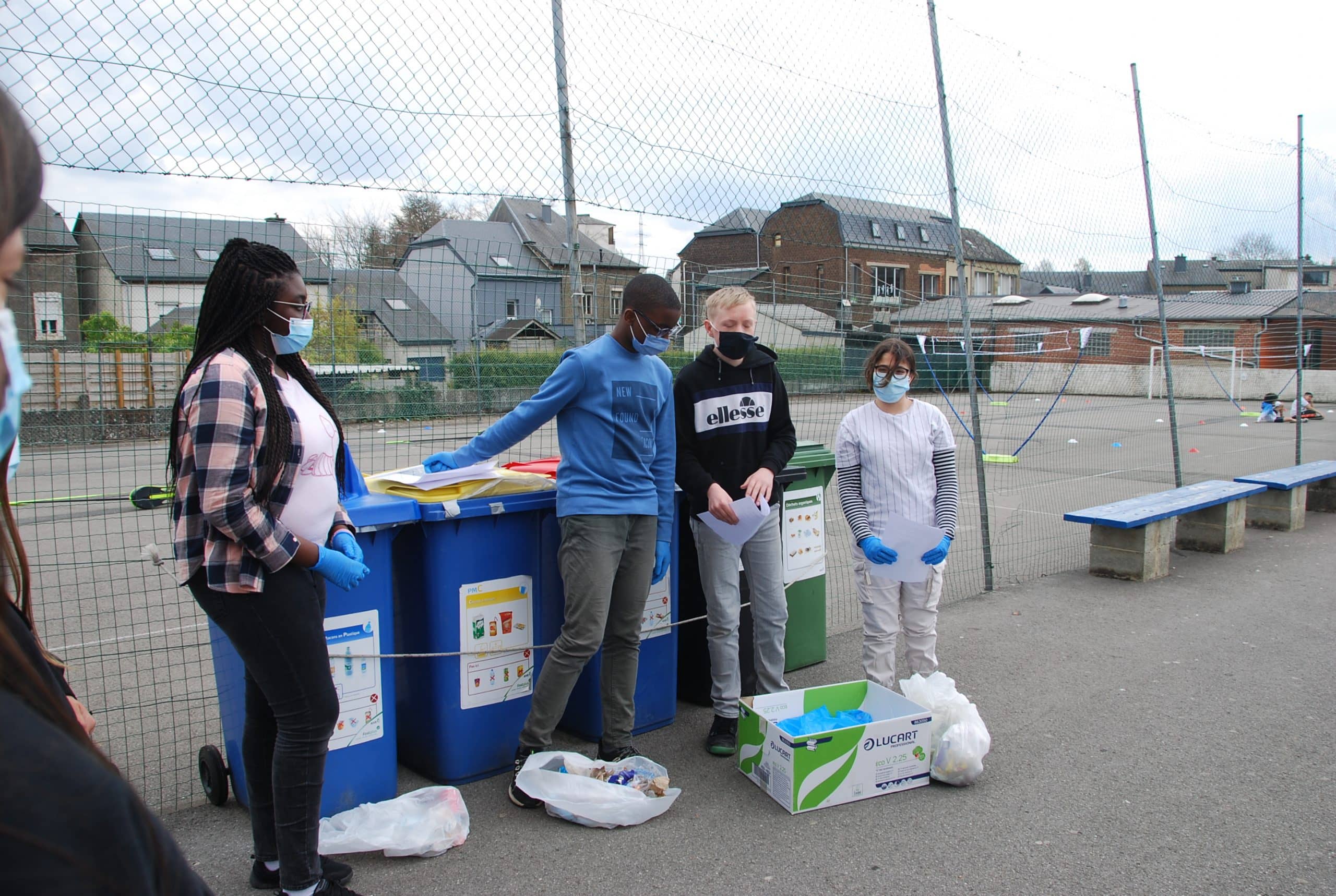Sensibiliser au tri des déchets, voici le défi que se sont lancé Carla, Lara, Kévin et Baptiste, 4 élèves de l’option sciences/Travaux Nature.