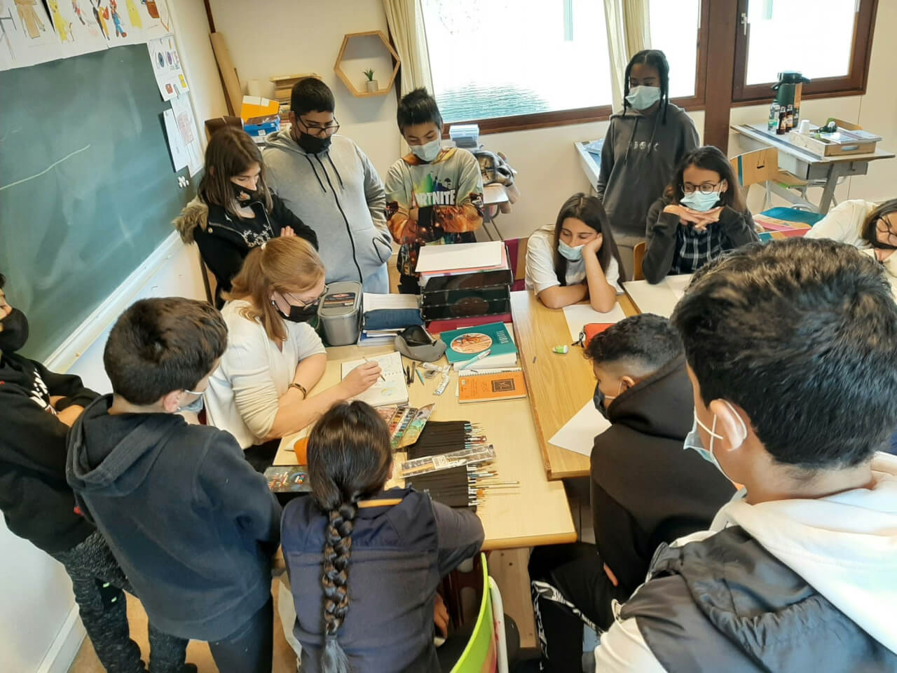 Dans le cadre de la création d’une bibliothèque à l’école et en soutien au projet d’illustration d’un livre pour les plus petits, Leatitia est venue expliquer son métier et leur donner quelques astuces d’illustration.
